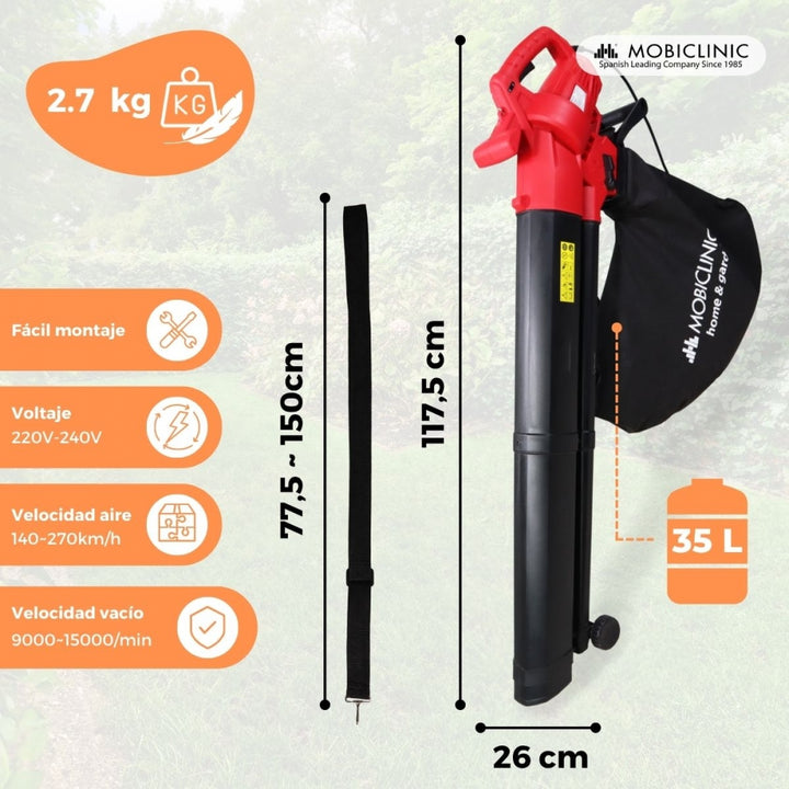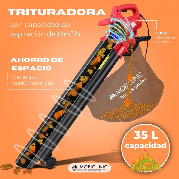 Équipé d'un puissant moteur électrique de 900 W avec une vitesse à vide comprise entre 9 000 et 15 000/min, le souffleur de feuilles Mobiclean offre une puissance constante et efficace . Les feuilles, le papier et les petites branches ne posent aucun problème à ce moteur puissant.