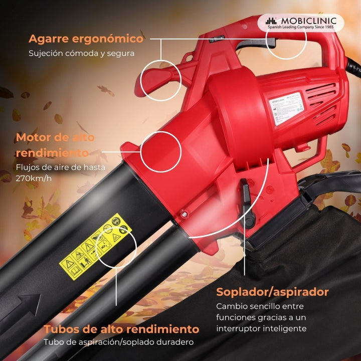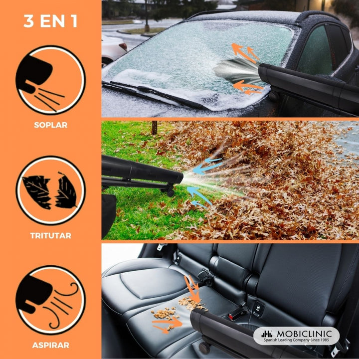 Avec 6 niveaux de vitesse, cet outil 3-en-1 s'adapte à tous les scénarios, des tâches légères aux défis plus intenses. Ses fonctions vont au-delà du simple soufflage , il aspire et broie également, tout en un. Le changement entre les fonctions très simple. Avec le souffleur de feuilles Mobiclean, transformez les tâches quotidiennes comme garder votre jardin, maison, terrasse ou porche propre en une expérience sans tracas.