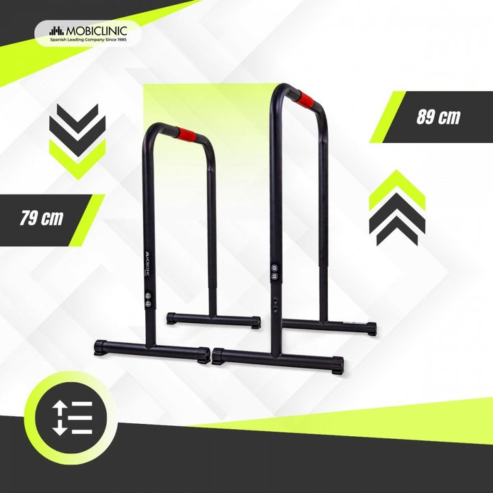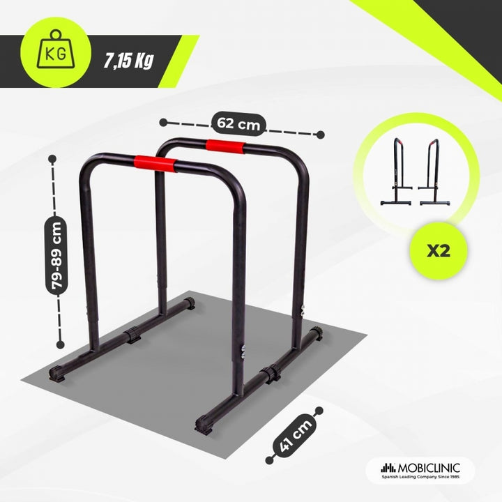 Les barres parallèles Twins sont idéales pour ceux qui recherchent un entraînement complet et polyvalent sans avoir à se déplacer en salle de sport. Grâce à leur hauteur réglable, elles s'adaptent aux besoins, à la taille et au niveau d'expérience de chaque utilisateur. Cela permet de réaliser une variété d'exercices, des dips et pompes profondes aux exercices abdominaux, de musculation des jambes et d'équilibre.