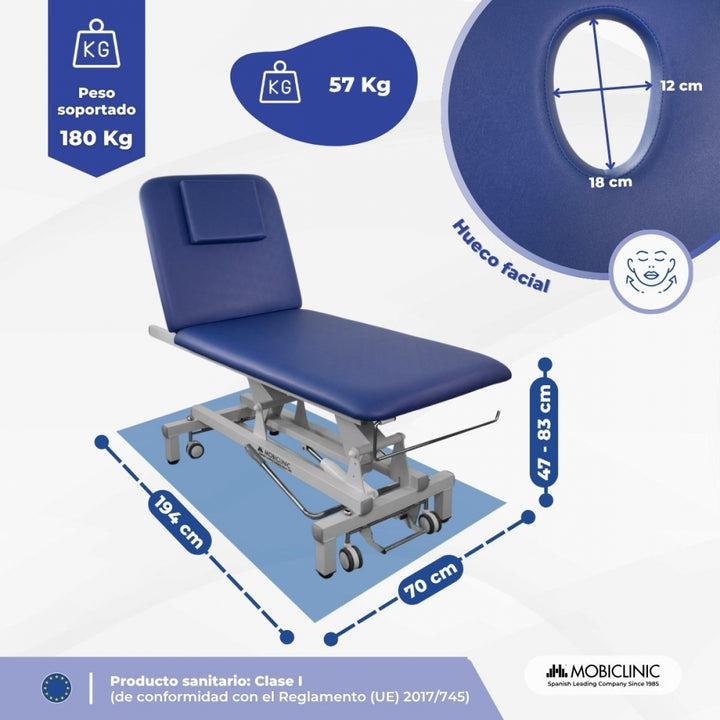 Sa conception comprend une ouverture faciale anatomique de 11 x 18 x 8,5 cm avec un bouchon rembourré pour un confort accru. Elle présente également des détails bien pensés pour optimiser le travail quotidien, comme le porte-rouleau intégré pour les tissus du brancard. Sa capacité de charge peut atteindre 180 kg et il convient aux utilisateurs mesurant plus de 146 cm, garantissant ainsi leur sécurité.