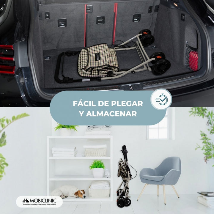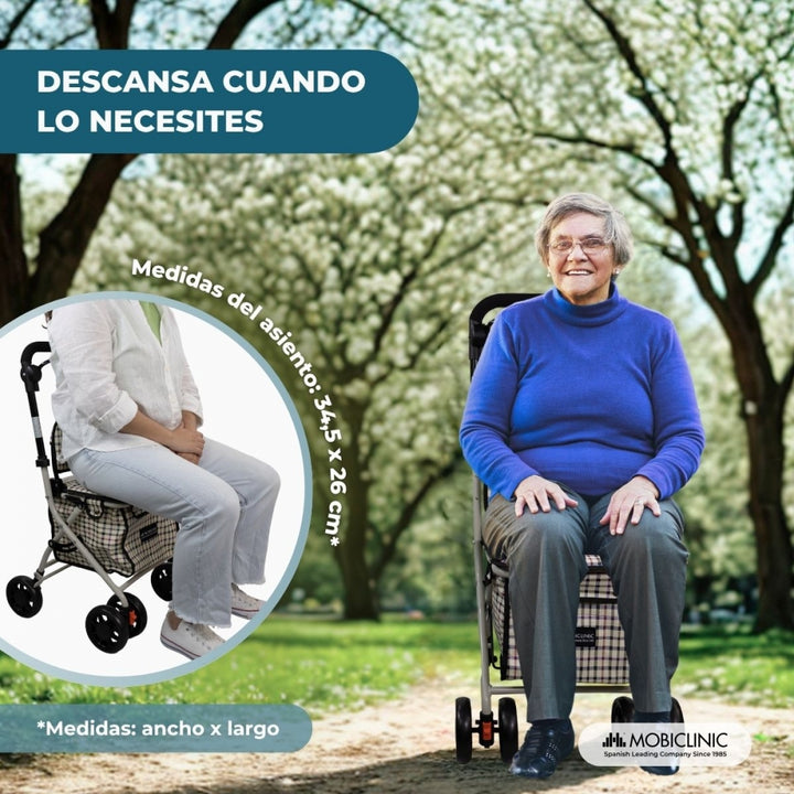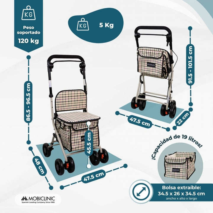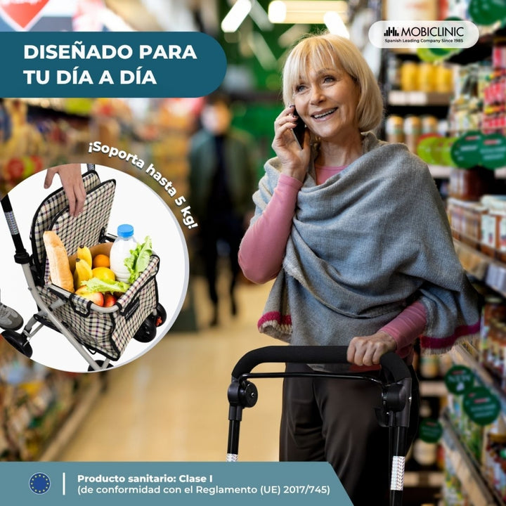 Déambulateur chariot de course | 4 roues | Pliable | Avec sac | Avec système de freinage | A carreaux | Coliseo | Mobiclinic