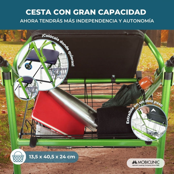 - Il dispose d'un panier à provisions qui peut être placé sous le siège ou à l'avant du déambulateur.