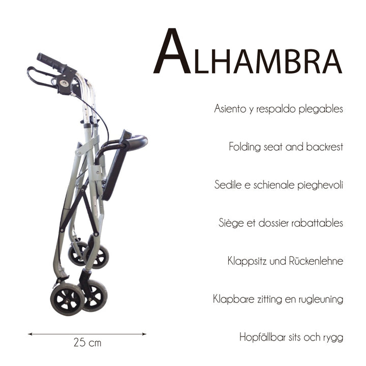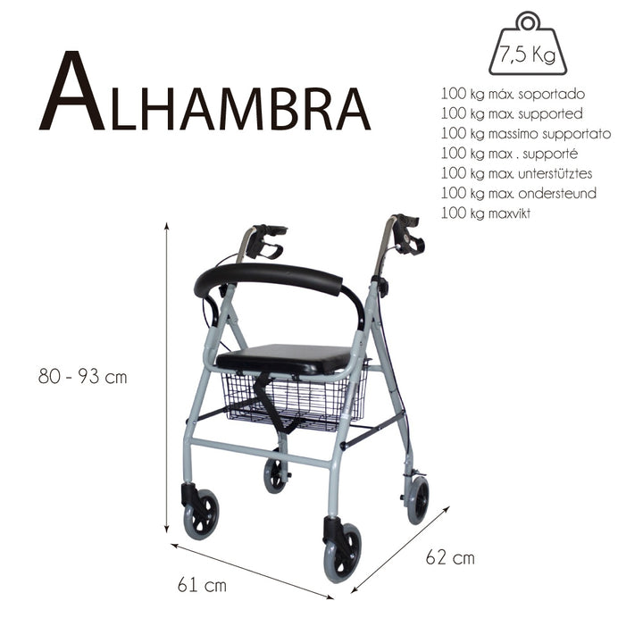 Le déambulateur pour personnes âgées Alhambra a un design innovant et léger qui offre une excellente stabilité pendant la marche. Il deviendra un soutien fidèle de vos déplacements.