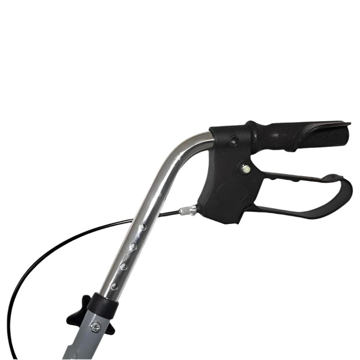 - Poignées ergonomiques réduisant la fatigue pendant l'utilisation. Elles comprennent des freins pour arrêter en douceur le déambulateur au bon moment et sans effort. Vous avez également la possibilité de laisser les freins verrouillés pour assurer l'immobilisation du déambulateur à roulettes lorsque vous vous reposez sur le siège.