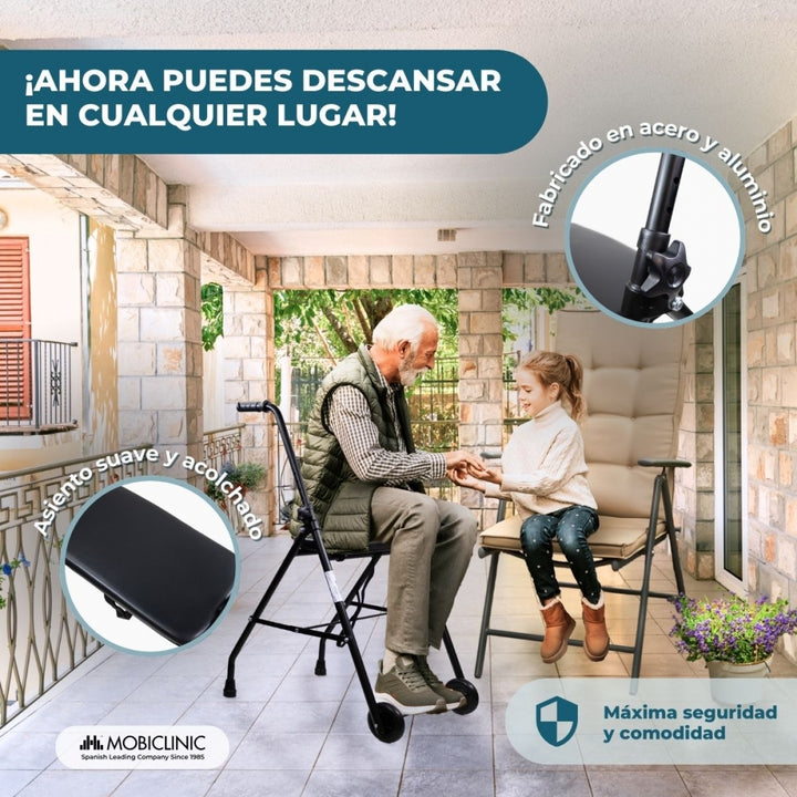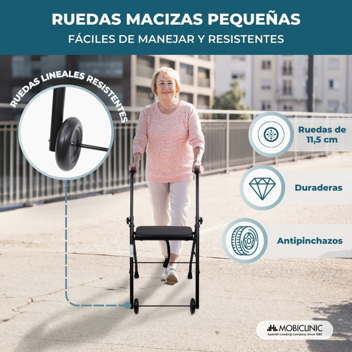 Le déambulateur pour adultes Emérita de Mobiclinic est équipé de deux roues qui vous assurent la stabilité nécessaire lors de vos promenades. Il possède également un siège rembourré en PVC pour vous permettre de vous reposer à tout moment. Ses poignées ergonomiques sont réglables en hauteur de 81,5 cm à 91,5 cm pour s'adapter à votre morphologie.