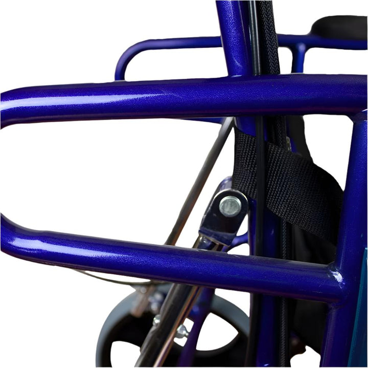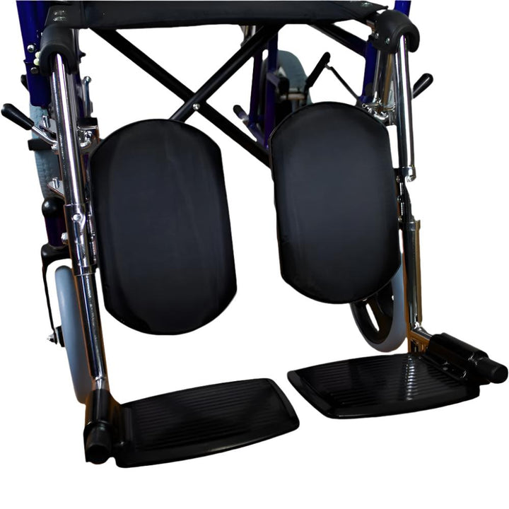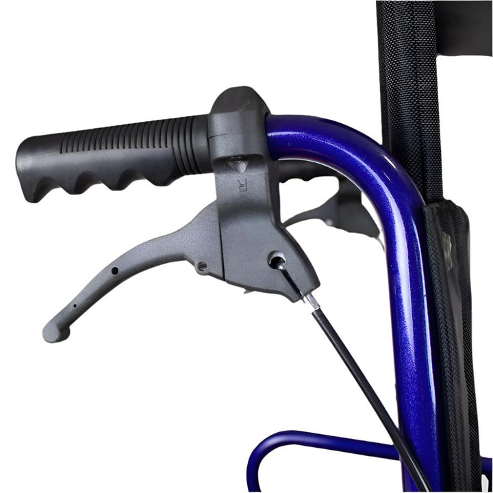 Ce fauteuil roulant pliant pour personnes à mobilité réduite est équipé d'un levier au pied, qui sera d'une grande aide pour l'accompagnateur pour monter et descendre de petites marches.