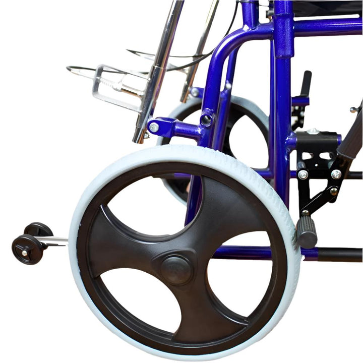 Ce produit a un ensemble de roues solides. Cette caractéristique élimine le risque de perforation intempestive et rend ce fauteuil roulant confort idéal pour une utilisation en intérieur.