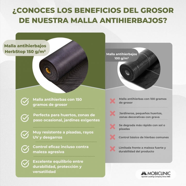 Le filet anti-mauvaises herbes HerbStop est une solution écologique et efficace pour lutter contre la prolifération des mauvaises herbes dans les jardins, les vergers et les serres. Fabriqué en polypropylène robuste d'un grammage de 150 g/m², il offre une durée de vie allant jusqu'à deux ans.