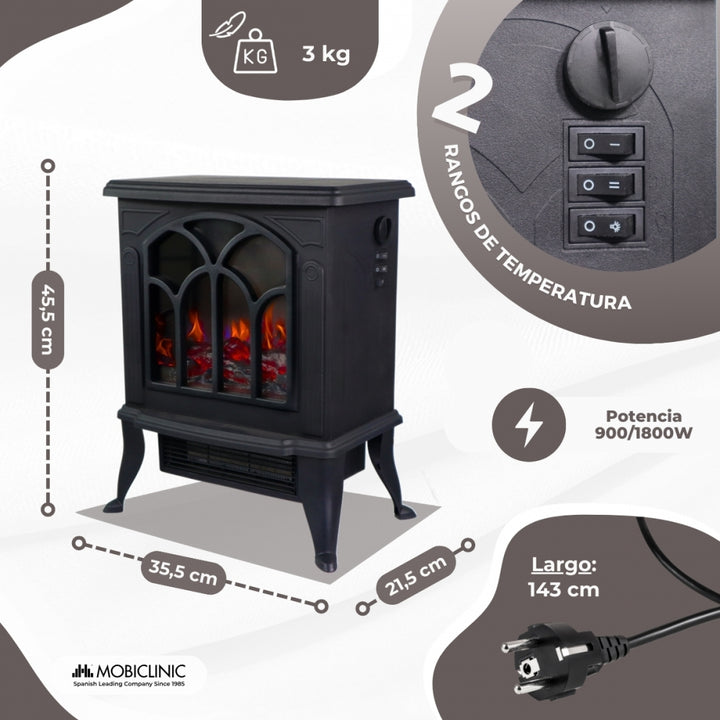 L'une des caractéristiques remarquables de la cheminée Ira est son superbe effet de flamme 3D. Imite la sensation d'un feu traditionnel, créant une atmosphère chaleureuse et naturelle dans votre espace, sans les dangers associés aux flammes nues ou à la fumée. Il est parfait pour ceux qui recherchent l’atmosphère chaleureuse d’une cheminée classique, mais de manière sûre et efficace.