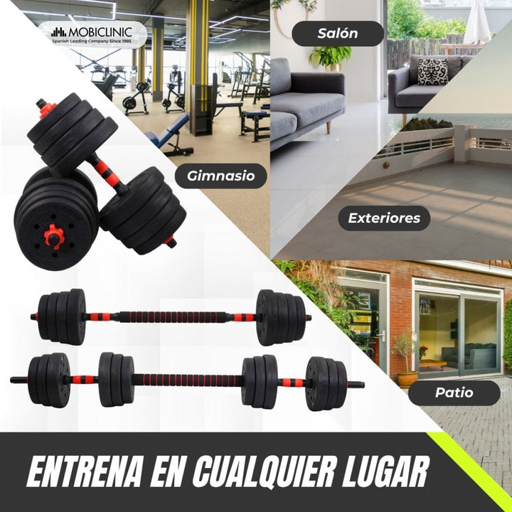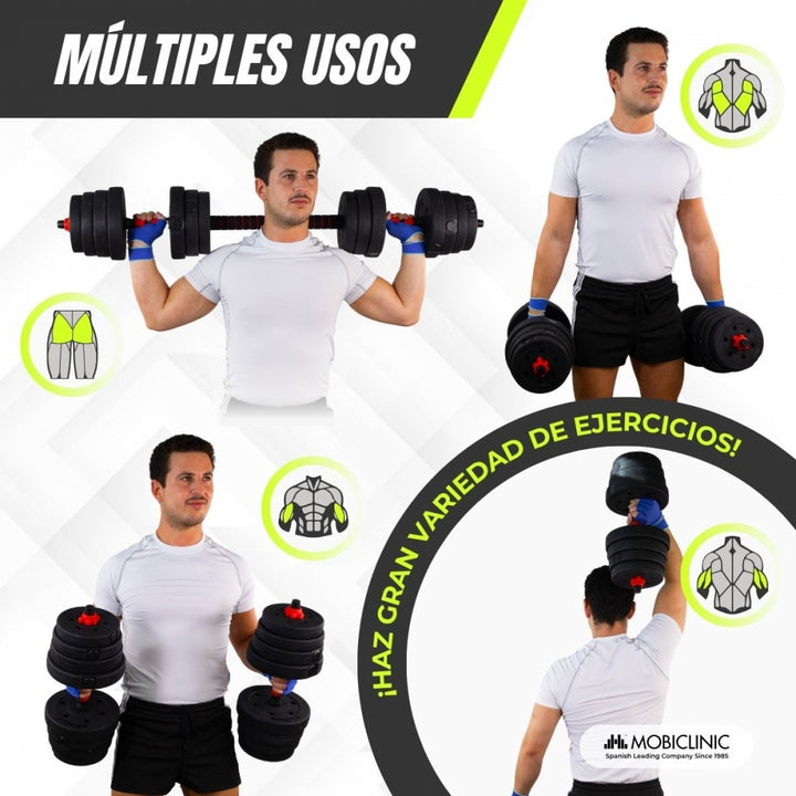 Le kit d'haltères Maxifit est idéal pour ceux qui recherchent un appareil d'entraînement à domicile adapté à une grande variété d'exercices. Grâce à sa conception 2-en-1, il offre quatre modes différents : haltères traditionnels et barre pour la musculation.