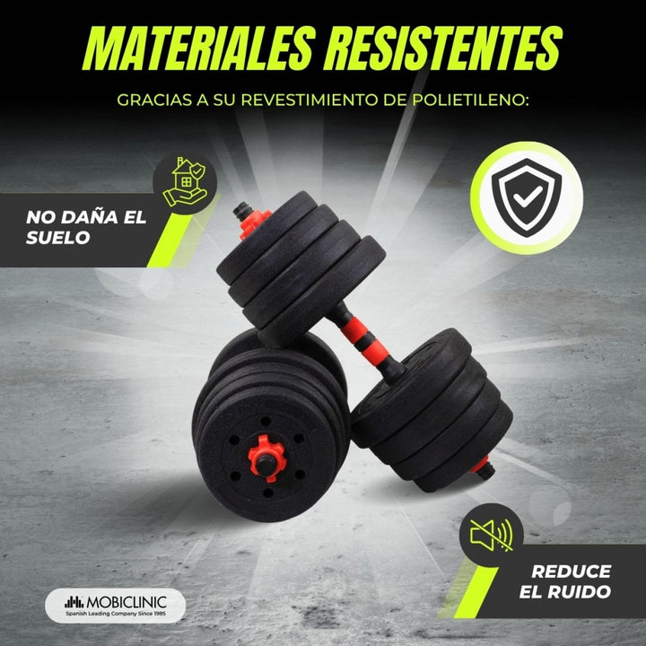 Grâce à leur matériau PE de haute qualité, les disques n'abîment pas le sol et ne font aucun bruit gênant lorsqu'ils sont posés dessus. Pour plus de confort, la barre de connexion est recouverte d'une mousse rembourrée et antidérapante qui améliore la prise en main et absorbe la transpiration. Ses poignées ergonomiques s'ajustent parfaitement et améliorent la friction, évitant ainsi tout glissement. Enfin, des écrous épais maintiennent les disques en place, assurant la stabilité nécessaire pendant votre entraînement.