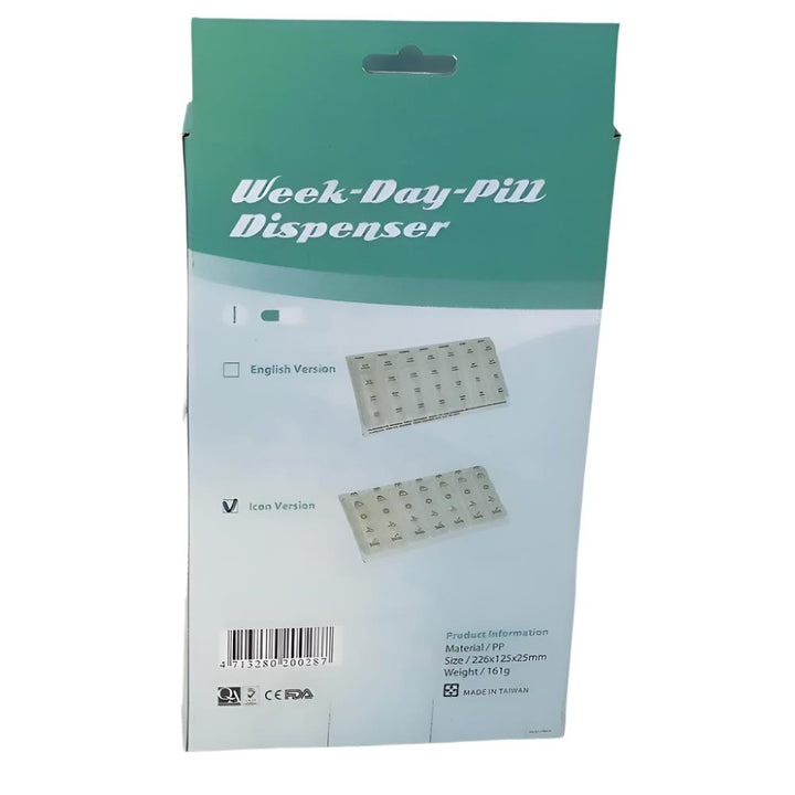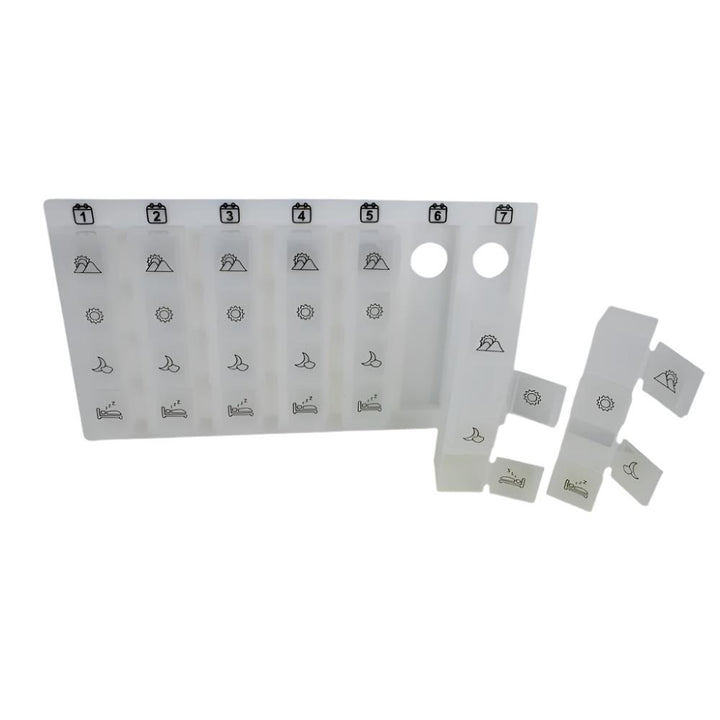 Ce pilulier de 4 prises par semaine contient sept contenants, un pour chaque jour de la semaine. Idéal pour les personnes qui doivent prendre plusieurs pilules par jour et pour suivre l'évolution de leur état de santé, vous n'oublierez plus jamais une piqûre grâce à ce pilulier hebdomadaire.