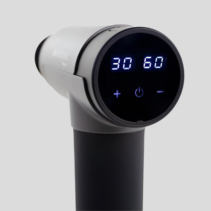 Le pistolet de massage intègre un système de sécurité, Stop and Go, qui permet à l'appareil de s'arrêter après dix minutes d'utilisation, reprenant immédiatement son fonctionnement en appuyant sur le bouton de marche. Ce système permet d'éviter d'éventuelles défaillances du mécanisme du pistolet de massage et empêche de le laisser allumé pendant une longue période.
