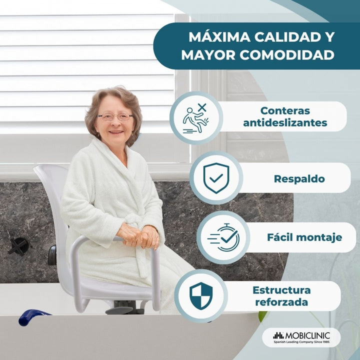 Ce siège pivotant pour baignoire facilite les tâches d'hygiène personnelle et permet à l'utilisateur de changer de position facilement et en toute sécurité.