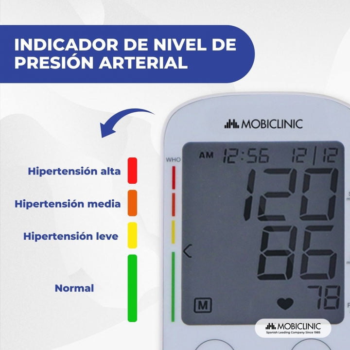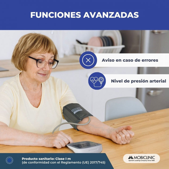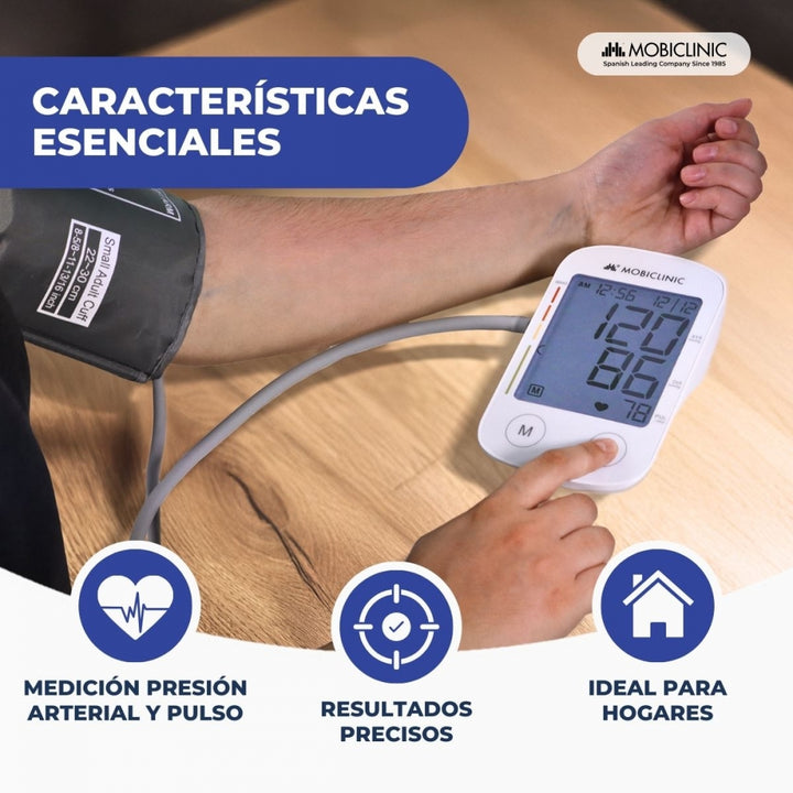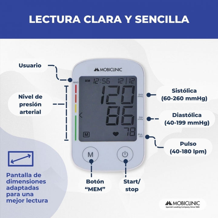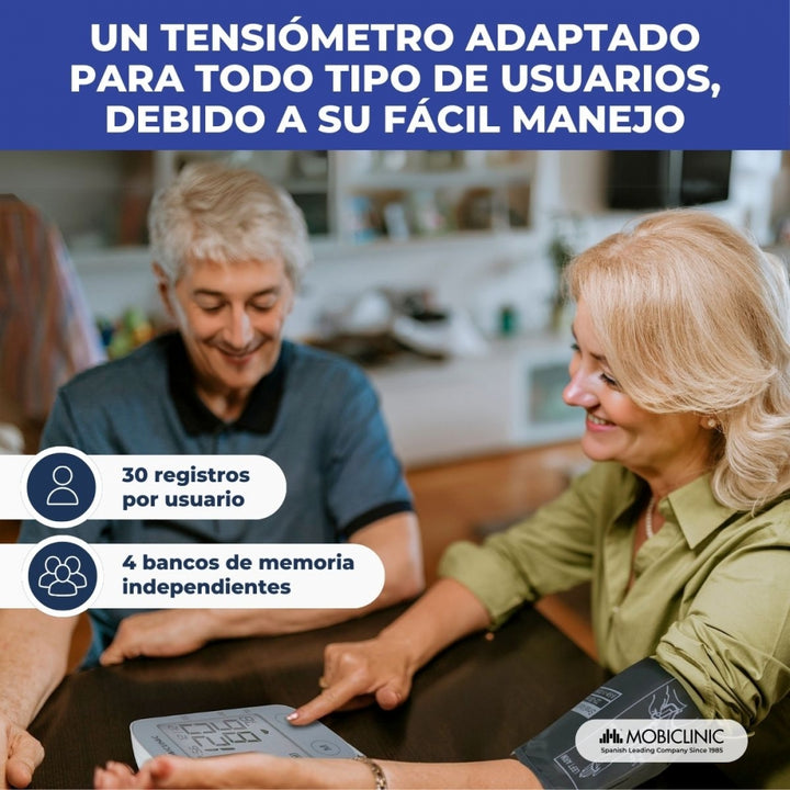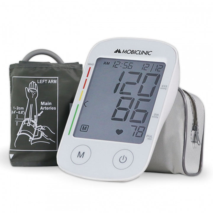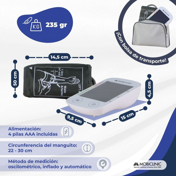 Le tensiomètre automatique avec mémoire Mobiclinic mesure la tension artérielle et le pouls rapidement et facilement.