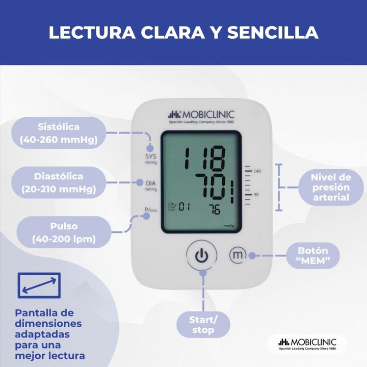 Son grand écran LCD affiche clairement et précisément les informations suivantes : pression systolique et diastolique, pouls, niveau de batterie, fonction de gonflage et de dégonflage, détection du brassard, erreur de mouvement et icône d'enregistrement des données. Outre sa fonction mémoire, il peut calculer la moyenne de trois mesures consécutives pour des données plus fiables.
