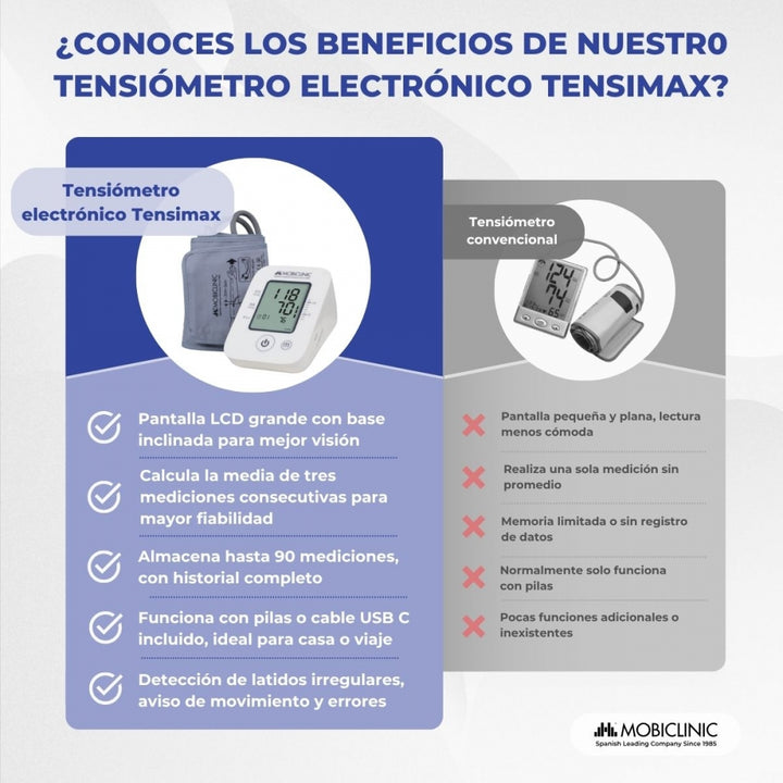 Le tensiomètre au bras Tensimax offre une expérience complète, intuitive et précise pour surveiller sa tension artérielle à domicile. Grâce à son bouton central unique, il est facile à utiliser et accessible à tous. De plus, sa base inclinée avec support améliore la visibilité et permet une lecture confortable des résultats.